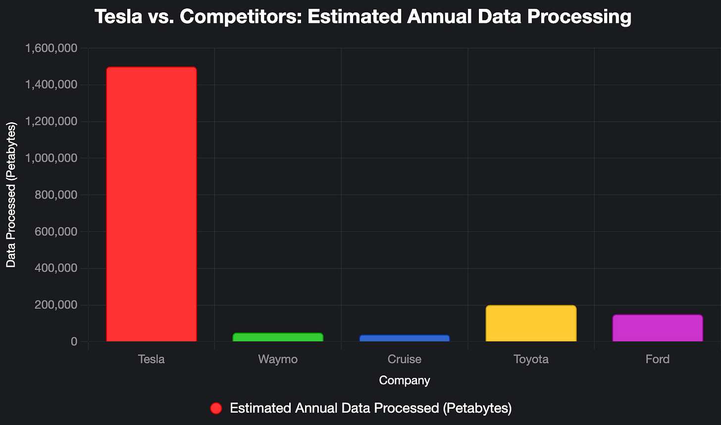La ventaja de Tesla en datos puede expresarse matemáticamente: