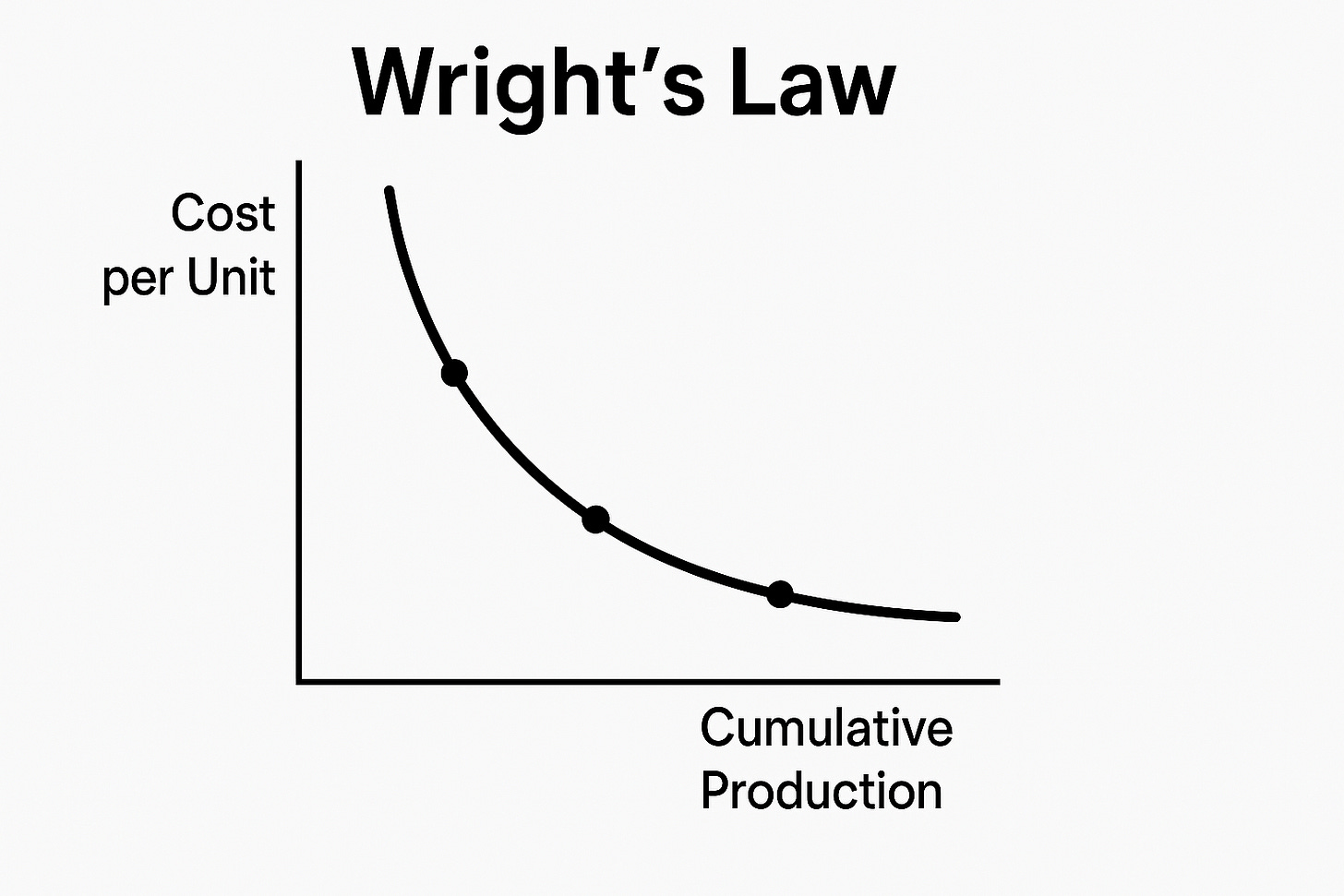 La curva de aprendizaje en manufactura sigue la Ley de Wright (recuerdan a Cathie Wood de Ark Invest) :